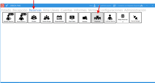 1. Para ello, accedemos al Erbon PMS >> Reservas >> Empresas.