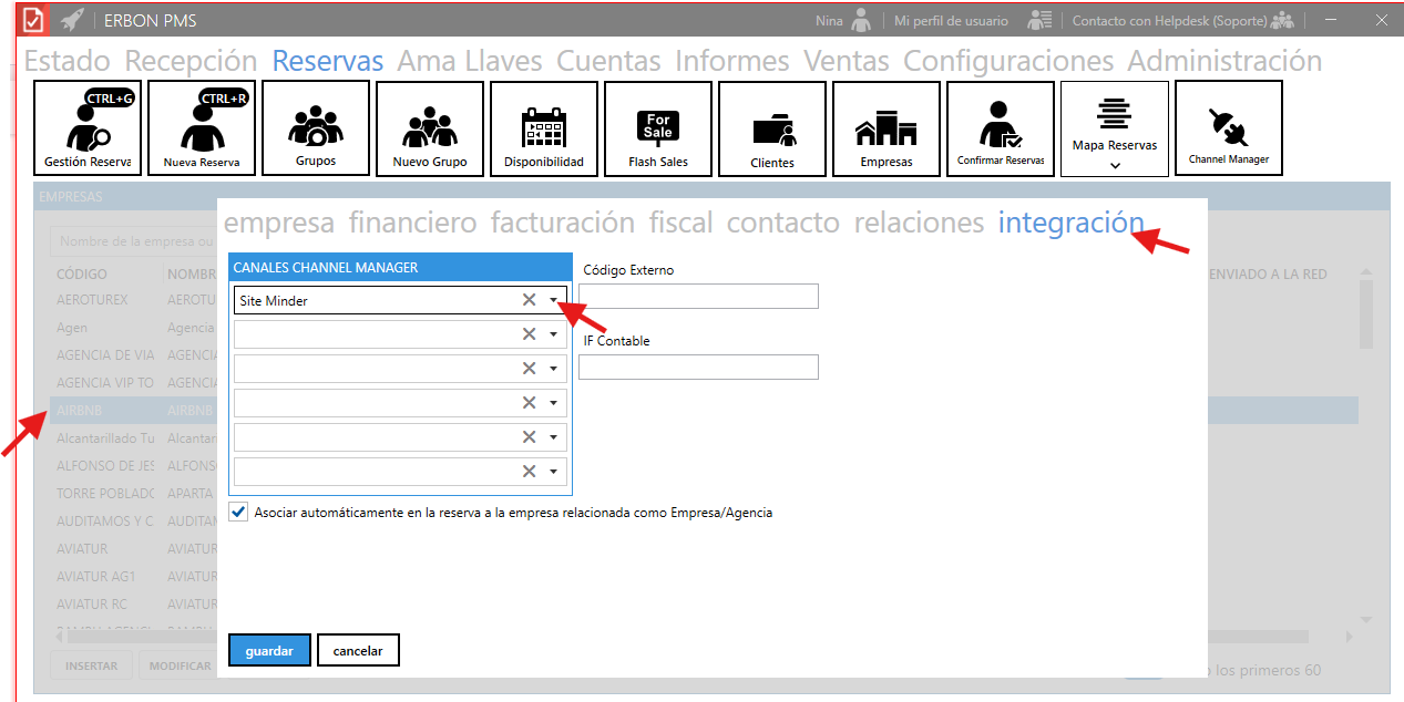 Dentro de nuestro PMS, es posible generar una integración con diferentes motores de reserva logrando así que las nuevas reservas migren a Erbon directamente con detalles como el nombre de la respectiva empresa/agencia por la cual se reservó.