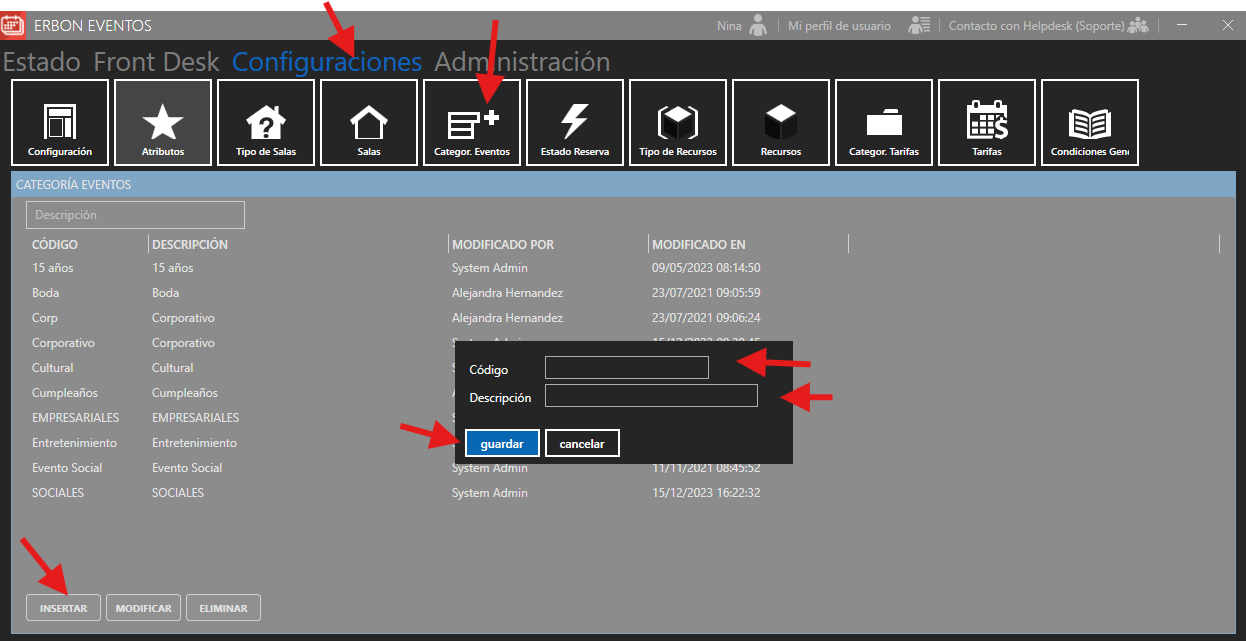 Listo Usuario Erbon. nuestro Evento tiene Categoria!