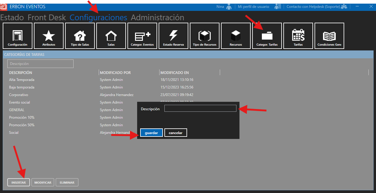 Al crear una reserva, asociará una tarifa por cada espacio de evento para que Erbon calcule el precio que se le cobrará al cliente por el evento. Estas tasas pueden organizarse en categorías para el análisis estadístico y la producción de Reservas x Categoría de tasa.