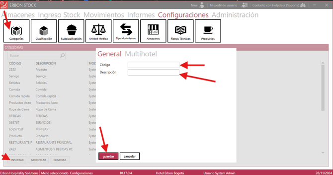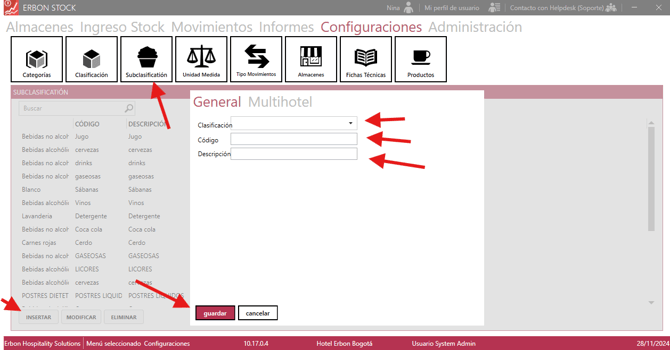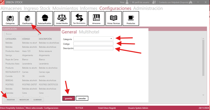 Configurar Stock Creación de Categorías - Clasificación y Sub Clasificación