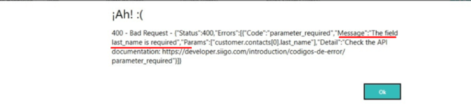 Error Siigo 400: The field last_name is required