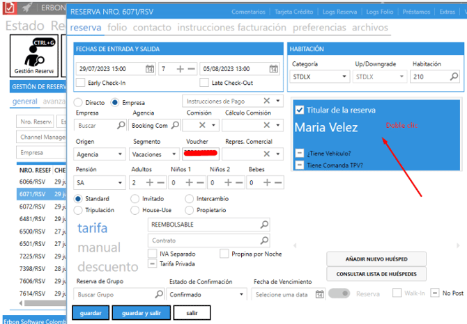 1. Acceder a Erbon PMS >> Gestión de Reservas >> busca y ábrela en modo edición: