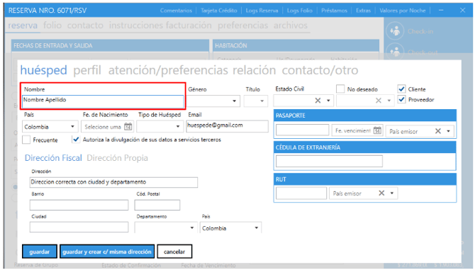 4. Guardar nuevamente en la reserva.