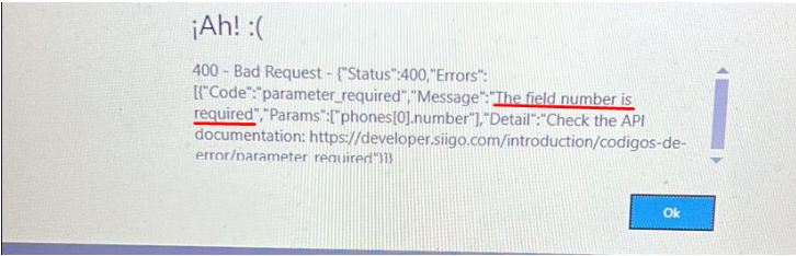 Error Siigo 400: The field number is required