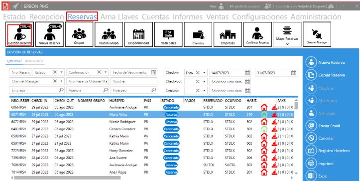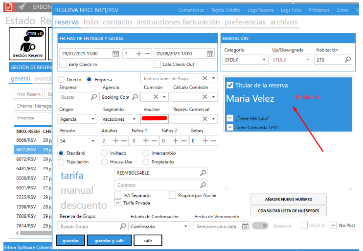 1. Acceder a Erbon PMS >> Gestión de Reservas >> busca y ábrela en modo edición: