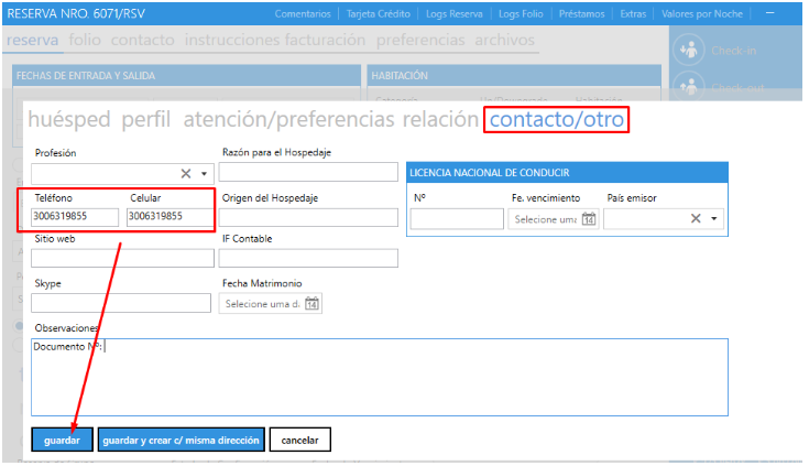 4. Guardar nuevamente en la reserva.