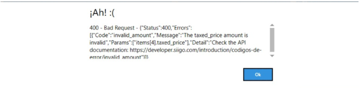 El valor especificado no es válido. El monto debe ser un número positivo en la unidad monetaria correspondiente y no exceder el monto mínimo o máximo (99,999,999,999.99).