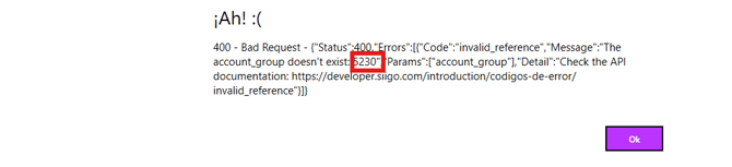 Error Siigo Code 400: Invalid reference: the account group doesn't exist