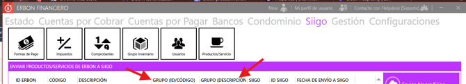 4. Ingresar nuevamente a Erbon financiero >> siigo>> productos/servicios >> enviar alegra / siigo