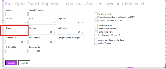 3.Deben determinar segun las politicas y el área contable del hotel, si pueden activar el grupo, crear uno nuevo o adaptar el nuevo producto creado a uno de los grupos ya existentes y activos que encuentran en su plataforma SIIGO