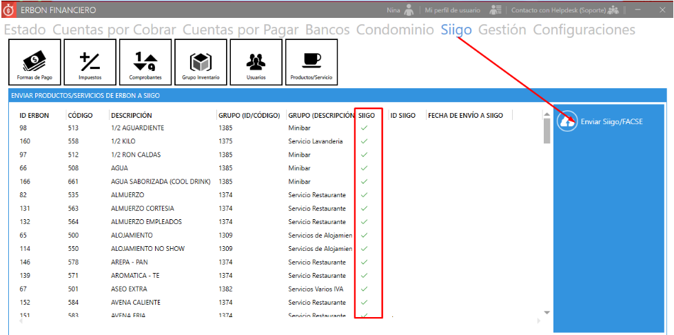 1. Desde Erbon Financiero >> Siigo >> Productos/servicios, envíalos a Siigo: