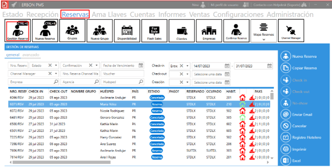 1. Acceder a Erbon PMS → Gestión de Reservas → busca y ábrela en modo edición:
