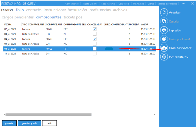 6. Vuelva a folio → comprobantes y envía a siigo con éxito: