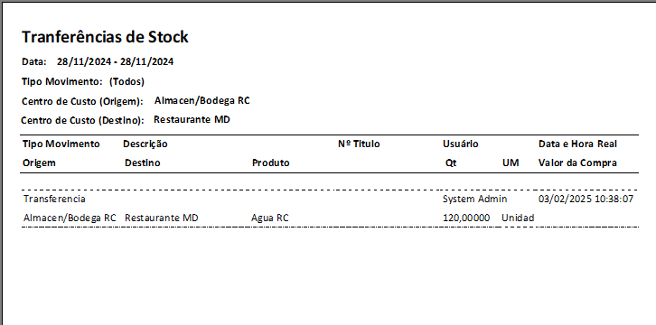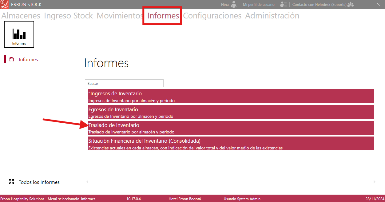 Verifiquemos los artículos transferidos entre los centros de costos, en el informe "Transferencias de inventario":
