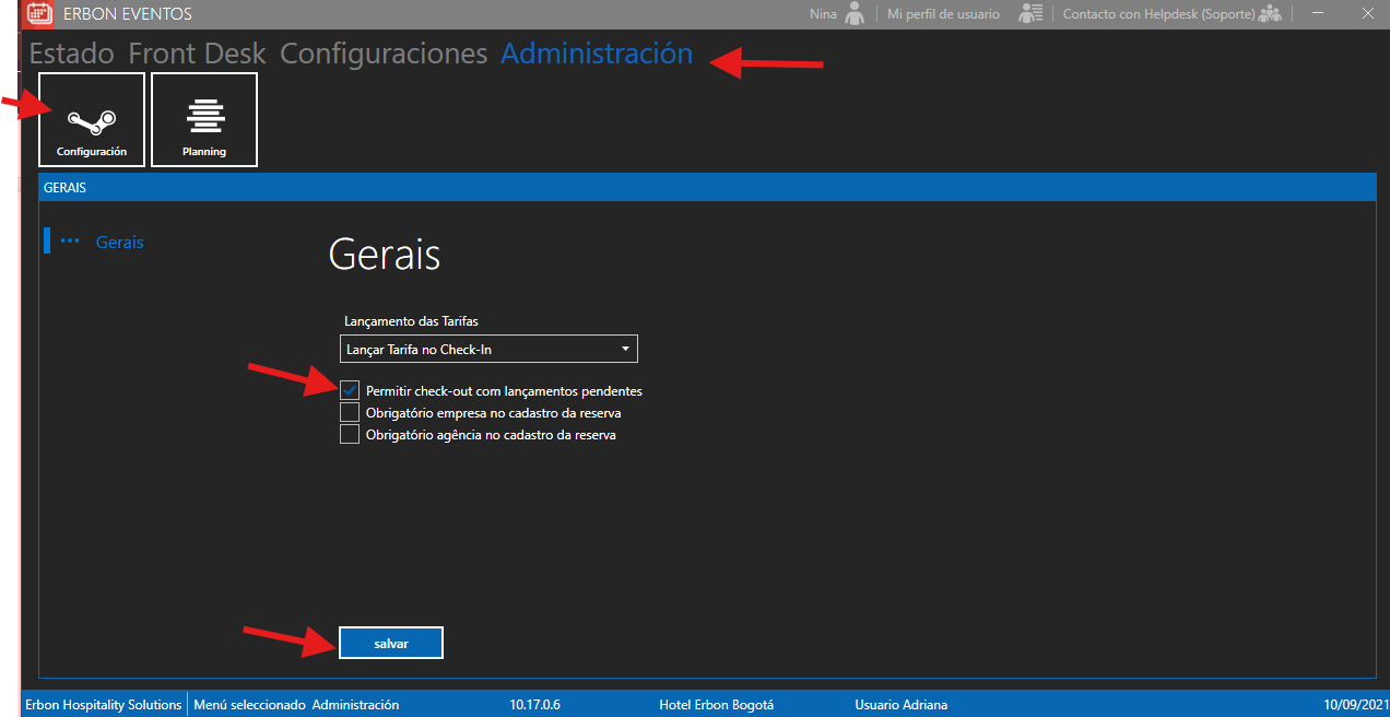 Administración: Permitir Check-out con lanzamiento Pendiente