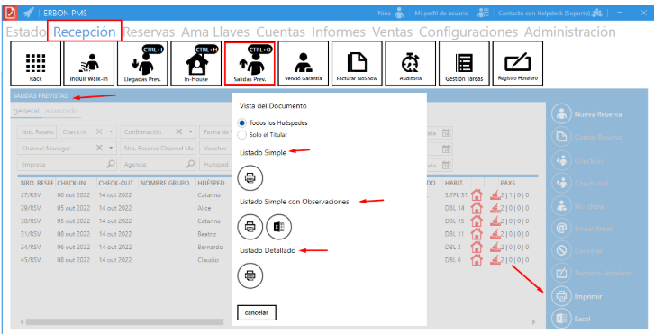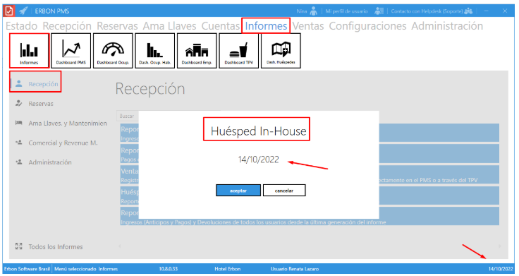 Huésped In- House: para verificar los huéspedes que se registraron;