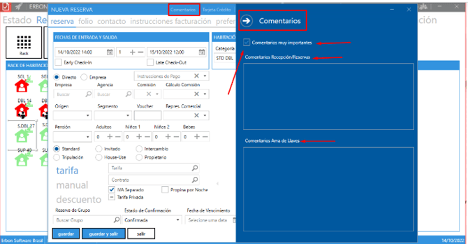 - Observación: Marcar el comentario como importante, cada vez que abra el registro de reserva, independientemente del usuario, abrirá la pantalla de observación.