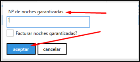 Para continuar con la auditoría nocturna, se marca la reserva como No-show y se le otorga 1 día de garantía, ya que el huésped llegará mañana.