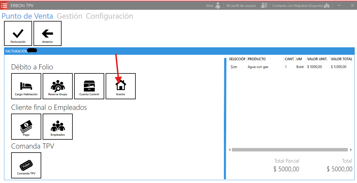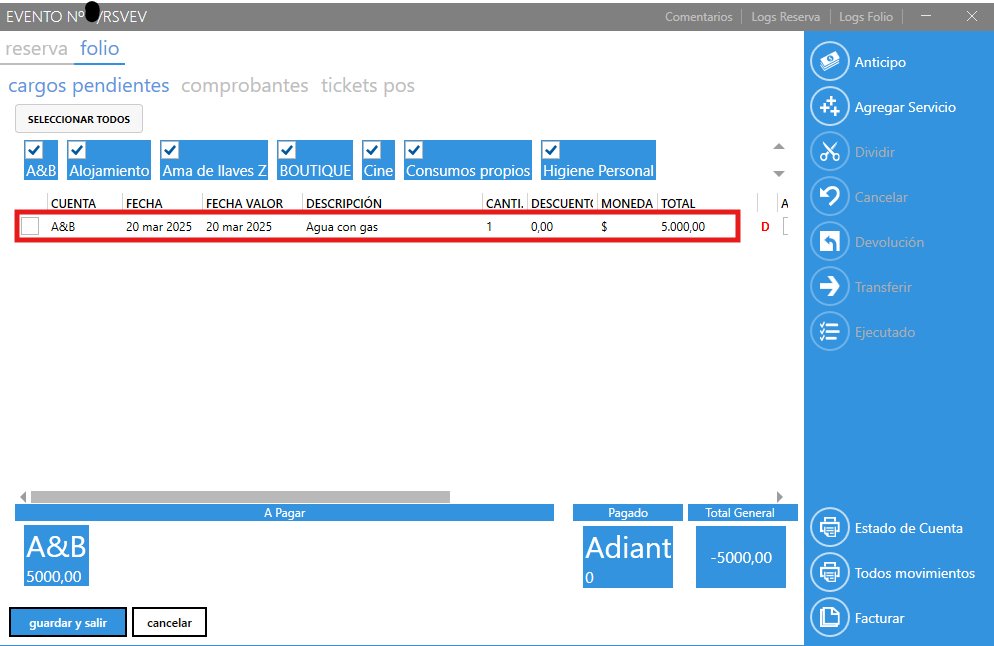 Ahora en el Módulo de Evento al abrir la reserva, podrá visualizar en Folio todo lo que se cargo desde el Módulo TPV