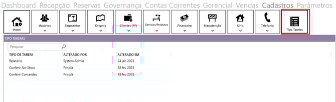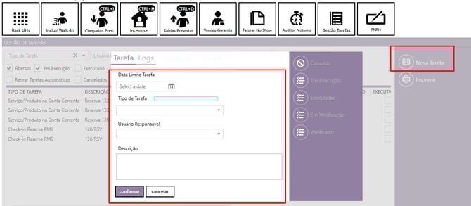 Módulo PMS → Recepção → Gestão Tarefas → Nova Tarefa → Normal ou Fixa →