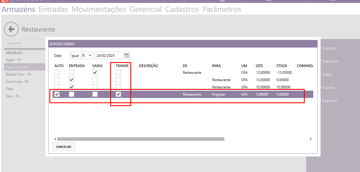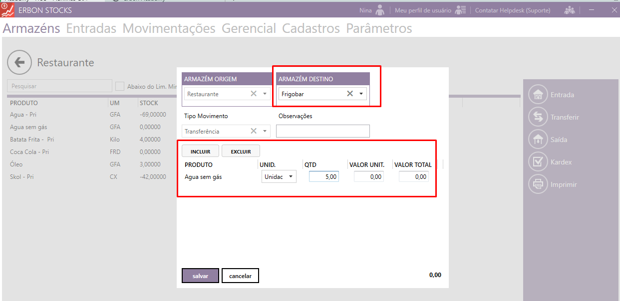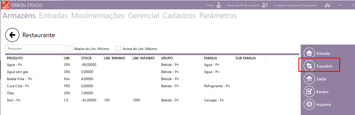 Neste manual iremos fazer a transferência de produtos entre armazéns.