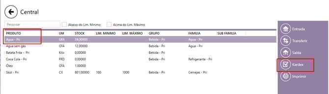 Para conferir o histórico de movimentação de um produto dentro do armazém, é possível verificar no Kardex.