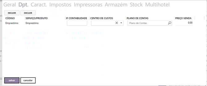 Módulo PMS → Cadastros → Serviços e Produtos → Serviços e Produtos → Incluir