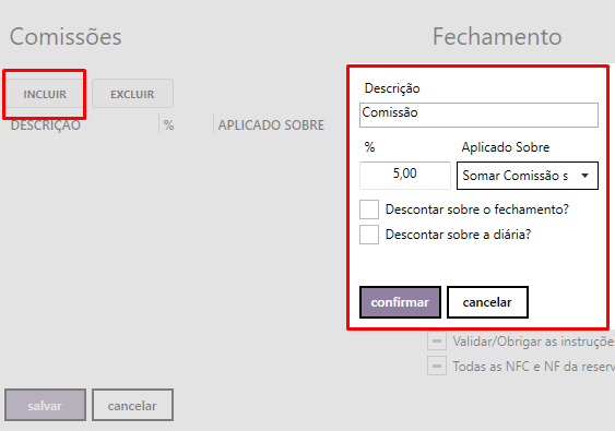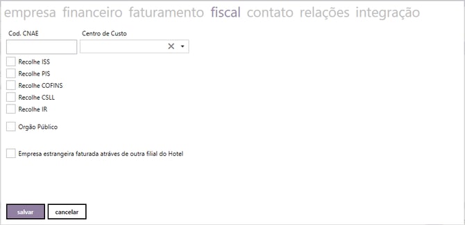Se deseja que a hospedagem seja fechado a conta somente em nome da empresa e que seja obrigatório esta validação basta indicar na coluna. São regras de fechamento de conta.