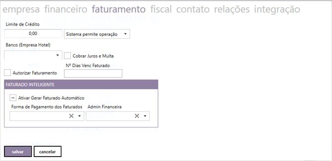- Faturado Inteligente: Sempre que esta empresa for faturada o sistema indica automaticamente esta forma de pagamento no faturado do modulo financeiro.