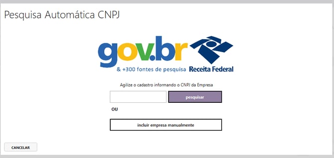 - CNPJ: Ao informar o CNPJ o sistema busca os dados na receita federal e preenche automaticamente;