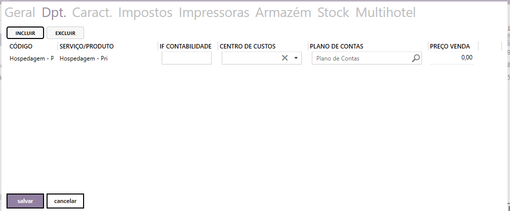 Módulo PMS → Cadastros → Serviços e Produto → Serviços e Produtos → Incluir
