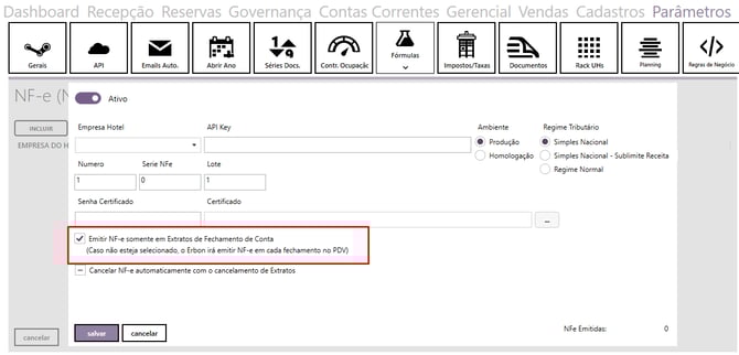 Caso não deseja que esta emissão seja automática, deverá selecionar na configuração da NF-E, em parâmetros, conforme mencionado abaixo.