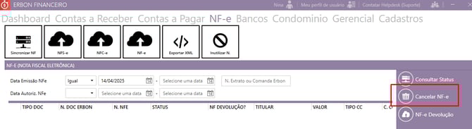 Módulo financeiro → NF-E → NF-E → Selecione a nota desejada → Cancelar