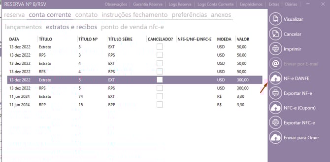 Acesse a reserva → conta corrente → extratos e recibos, selecione o EXT e clique em NF-e DANFE.
