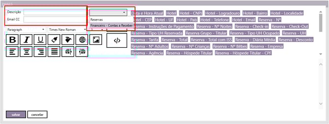 Na próxima tela, podemos inserir o texto do e-mail padrão a ser enviado, indicando que é para o módulo financeiro: