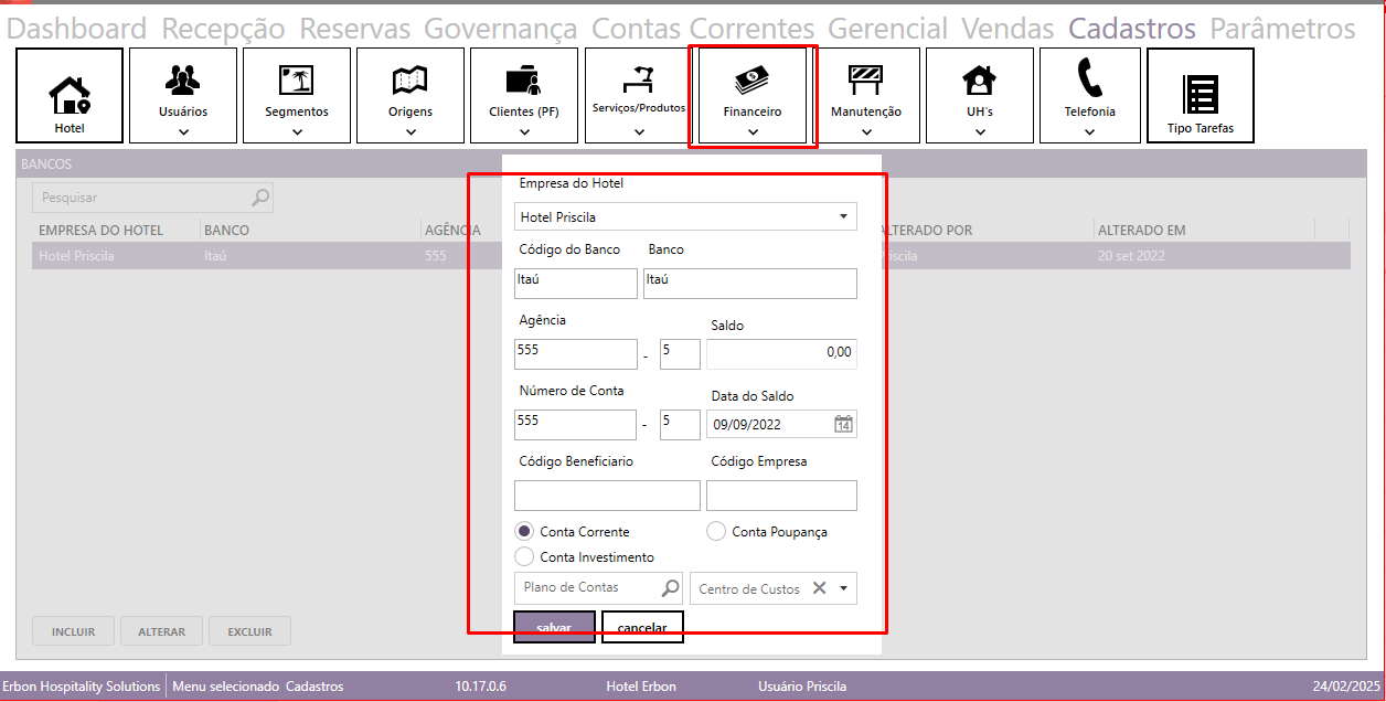 Empresa do Hotel: Vincular a qual empresa pertence.