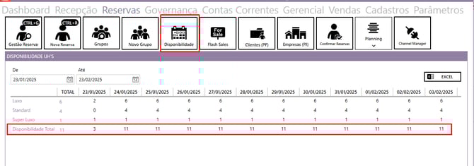 Se você quiser saber quanto tem de disponibilidade, para vender novas reservas, sempre olhe no quadro de disponibilidade.