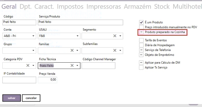 3. Se for um produto preparado na cozinha é necessário informar o sistema assinalando a opção: