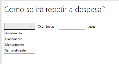Escolha com qual frequência esta conta vai aparecer no contas a pagar automaticamente: Anualmente, diariamente, mensalmente ou semanalmente e quantas vezes.