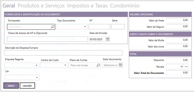 Módulo financeiro → Contas a pagar → Nova Conta → manualmente → Fixa