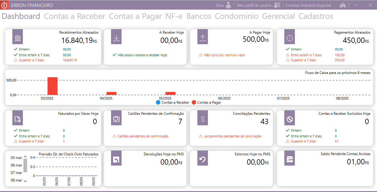 No dashboard financeiro podemos verificar os dados referente a data atual do sistema.