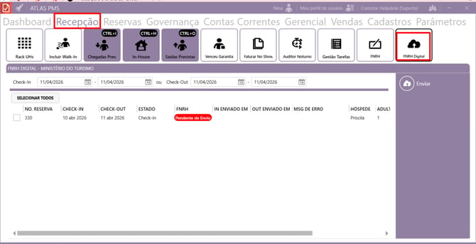 Vá em PMS → Recepção → FNRH Digital