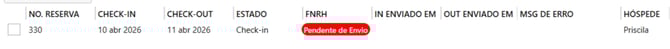 É obrigatório enviar a FNRH no check-in e check-out.