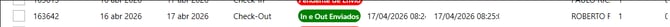 In e Out enviados- Check-in e check-out da reserva enviados