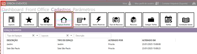 Para trabalhar com o módulo de eventos, é necessário ter cadastrado no sistema todos as salas/espaços que os eventos podem ocorrer.