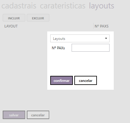 Selecione os layouts e quantidade de pessoas que podem ocupar o espaço.