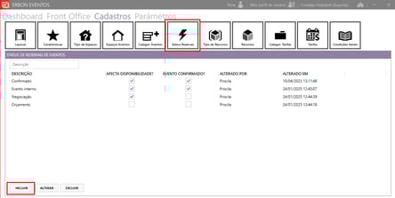Módulo eventos → Cadastros → Status Reservas → Incluir