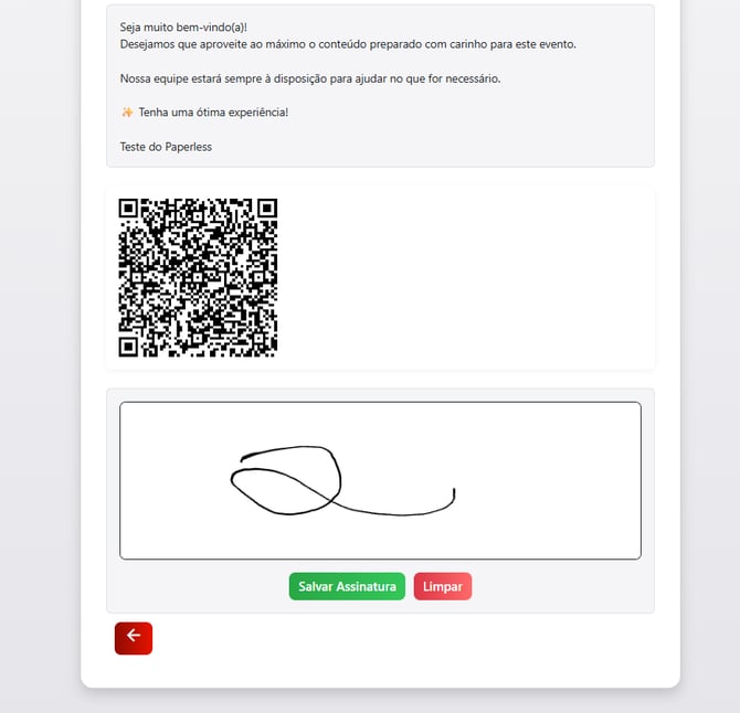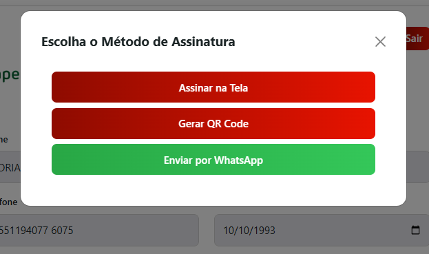 - Gerar QR Code. Quando o cliente scanear, no celular dele terá a tela para assinatura digital.