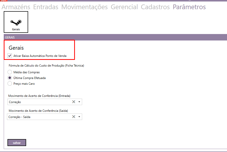 Recomendamos sempre trabalhar com a baixa automática no estoque, no momento da implantação, sempre mantemos essa opção ativa.